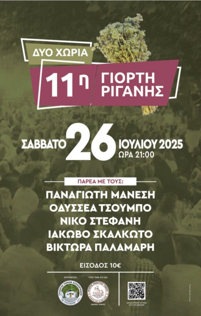 📍 Διοργάνωση: Σύλλογος Τηνίων Δυοχωριανών “Το Γλυστέρνι”