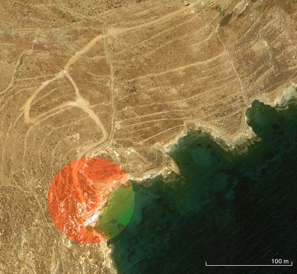 η αρχή του χωματόδρομου που οδηγεί στα Γαστριά, επί της κεντρικής οδού Κιονίων – Αγίας Μαρίνας, μετά την Πλατιά Άμμο (37.554742, 25.124355 ή https://maps.app.goo.gl/HrLHWTSQAEBBsJD2A )