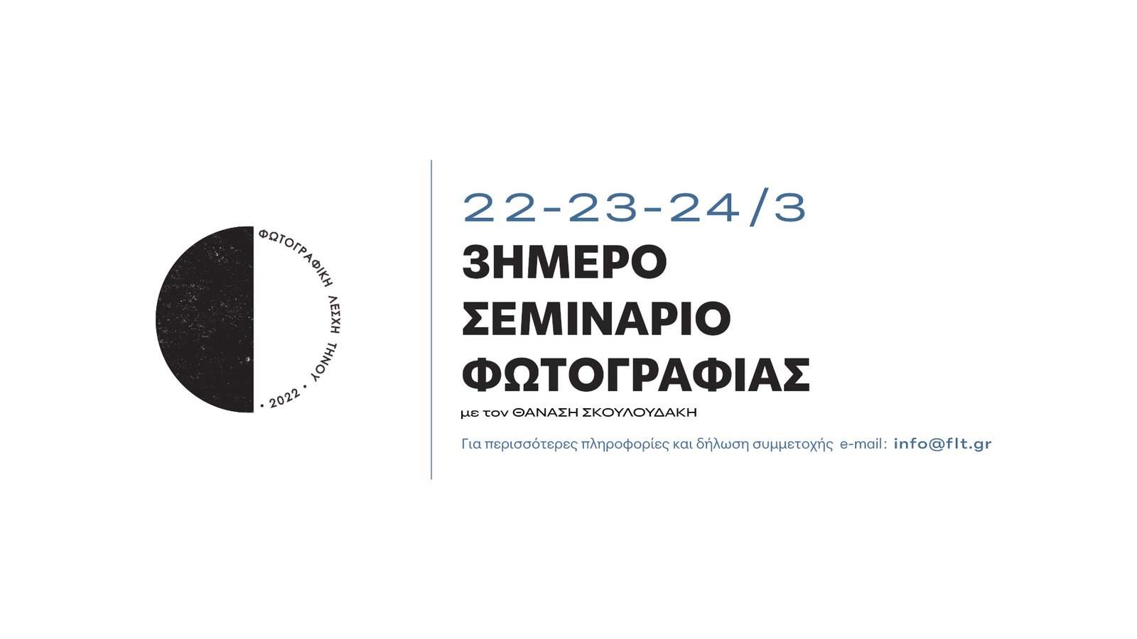Η Φωτογραφική Λέσχη Τήνου με καλεσμένο τον εκπαιδευτή Φωτογραφίας Θανάση Σκουλουδάκη, διοργανώνει τριήμερο εισαγωγικό σεμινάριο το οποίο απευθύνεται σε άτομα ανεξαρτήτου ηλικίας, αλλά και φωτογραφικών γνώσεων που θέλουν να γνωρίσουν ή να εμβαθύνουν στον κόσμο της Φωτογραφικής Τέχνης.