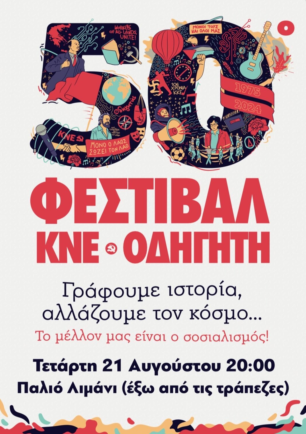 Το Φεστιβάλ ΚΝΕ-Οδηγητή έχει κερδίσει επάξια τον τίτλο του μεγαλύτερου πολιτικού – πολιτιστικού Φεστιβάλ της χώρας. Τον κέρδισε μέσα στον μισό αιώνα διαρκούς παρουσίας του και τον εδραίωσε στις συνειδήσεις όλων των νέων ανθρώπων που πέρασαν τις πύλες των Φεστιβάλ ανά την Ελλάδα και είδαν από κοντά μία εικόνα ενός άλλου κόσμου, του κόσμου της αλληλεγγύης, του δίκιου, των πολλών! Μέσα σε αυτά τα 50 χρόνια είναι αμέτρητοι οι καλλιτέχνες που φιλοξενήθηκαν στις σκηνές του, τραγουδιστές, συνθέτες, ηθοποιοί, ποιητές, που ύψωσαν την τέχνη τους στο μπόι που της «πρέπει», στο μπόι των ονείρων και των ανθρώπων… Πάνω σε αυτό το θεμέλιο συνεχίζει το Φεστιβάλ της ΚΝΕ και του “Οδηγητή” να βαδίζει χέρι-χέρι με τους αγώνες και τις αγωνίες της νεολαίας, ταυτίζεται με τη νεανική ορμή και τη διάθεση για μια αγωνιστική στάση ζωής που ταιριάζει σε αυτούς που οραματίζονται έναν κόσμο χωρίς αδικία και εκμετάλλευση.