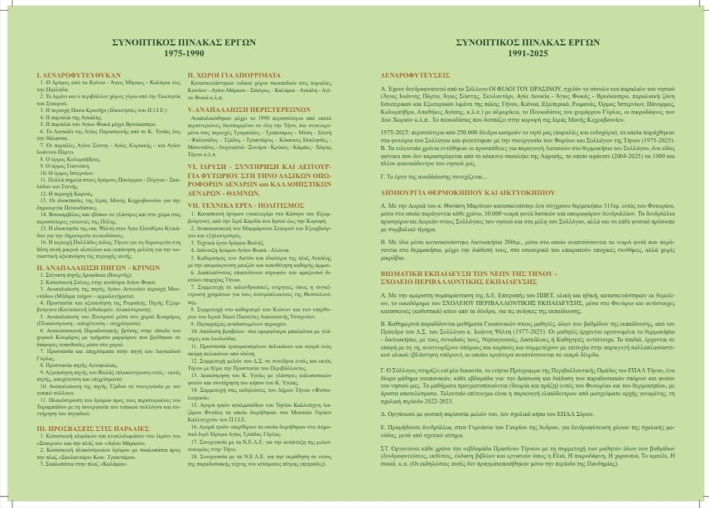 Παρακάτω ο συνοπτικός πίνακας των έργων του Συλλόγου 1975-2025.