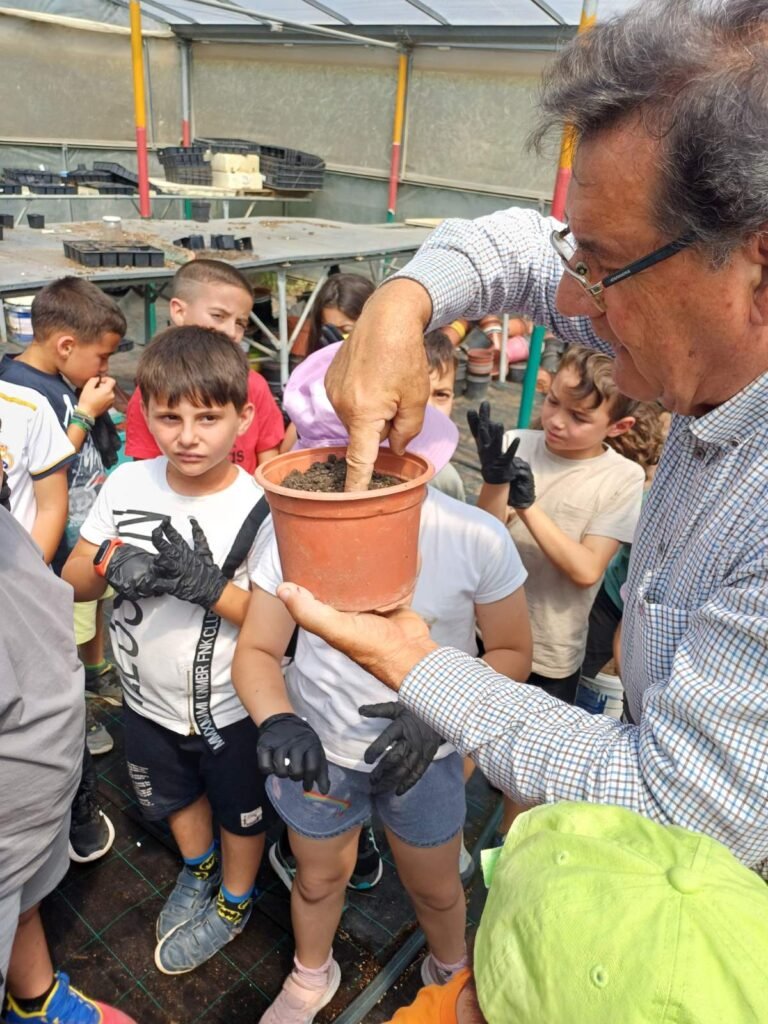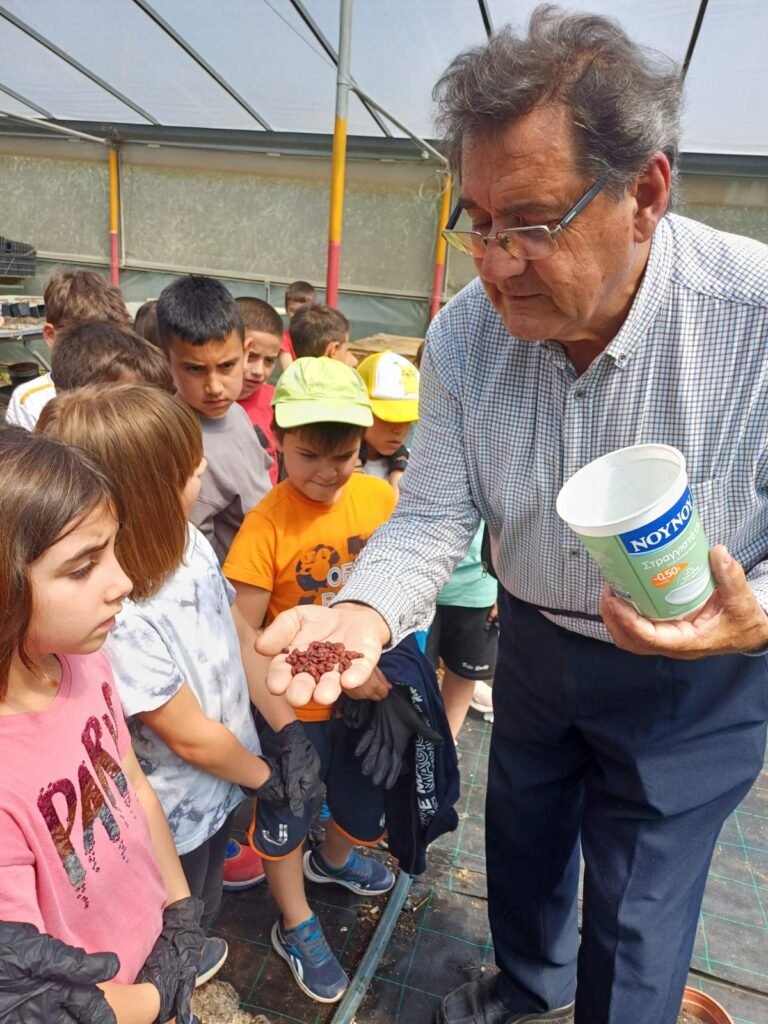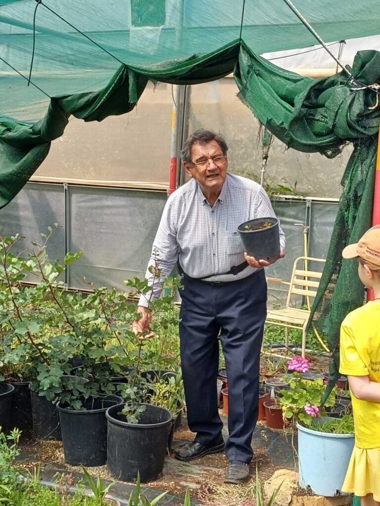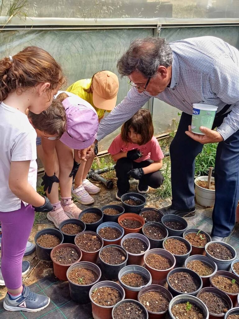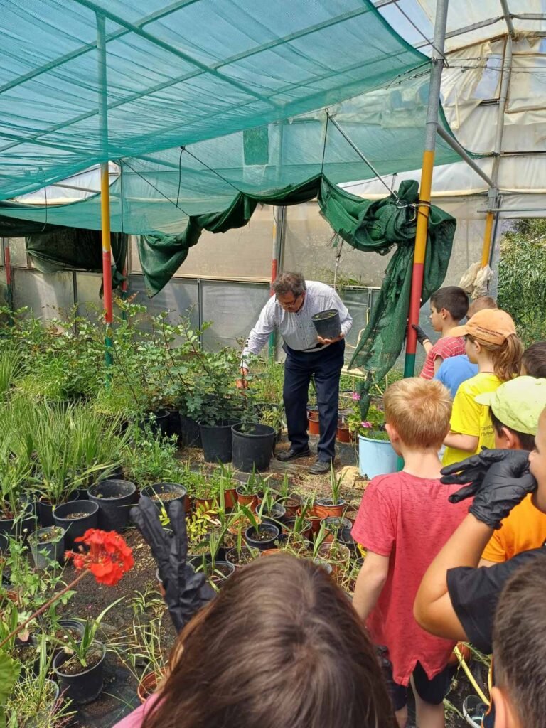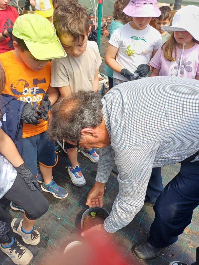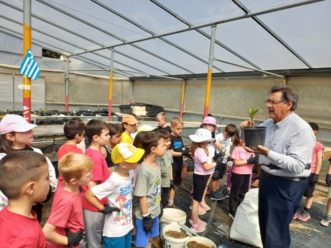 Στο πλαίσιο του μαθήματος της Μελέτης Περιβάλλοντος, την Τρίτη 20 Μαΐου 2025, οι μαθητές των τμημάτων Β1′ και Β2′, με τη συνοδεία των δασκάλων τους κα Λούβαρη Άννα και κα Δουβίτσα Νίκη,  επισκέφτηκαν το Φυτώριο. Ο καθηγητής κ. Ιωάννης Ψάλτης, πρόεδρος του Συλλόγου, καλωσόρισε εκπαιδευτικούς και μαθητές. Πρώτα ενημέρωσε τους μαθητές για τους λόγους ίδρυσης του Συλλόγου, στη συνέχεια τους παρουσίασε τον τρόπο με τον οποίο προκύπτει ένα νέο φυτό με μόσχευμα και ξενάγησε τα παιδιά στον χώρο. Τέλος, τα παιδιά φύτεψαν σπόρους χαρουπιάς σε γλαστράκια. Πριν την αποχώρησή τους, τα παιδιά είδαν πώς ποτίζεται ο χώρος του θερμοκηπίου και δροσίστηκαν και τα ίδια! Όλοι φύγαμε ενθουσιασμένοι από την επίσκεψή μας! Η δράση συνεχίστηκε στο σχολείο μας, όπου ζωγραφίσαμε πήλινα γλαστράκια και την επόμενη μέρα φυτέψαμε σε αυτά σπόρους λουλουδιών. Τα φροντίζαμε καθημερινά και περιμέναμε να φυτρώσουν οι πρώτοι βλαστοί.