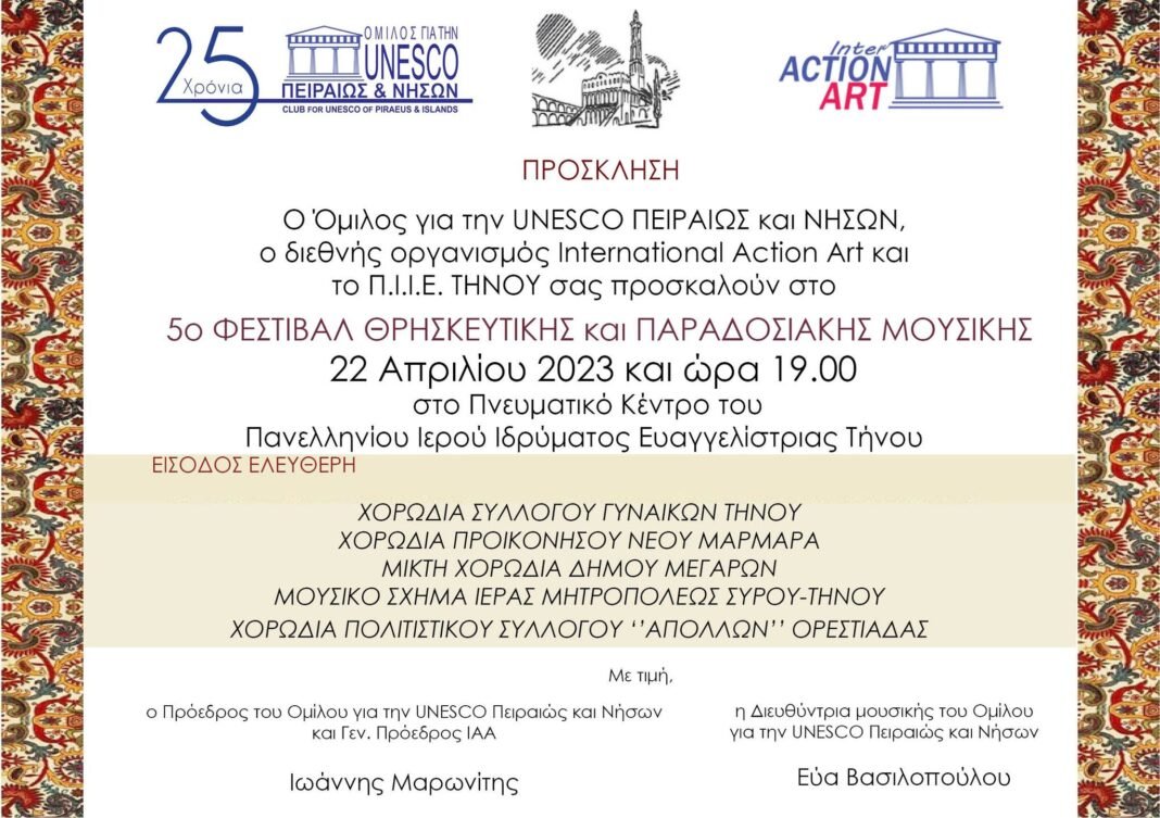 Ο Όμιλος για την UNESCO ΠΕΙΡΑΙΩΣ και ΝΗΣΩΝ, ο διεθνής οργανισμός International Action Art και το Π.Ι.Ι.Ε. Τήνου σας προσκαλούν στο