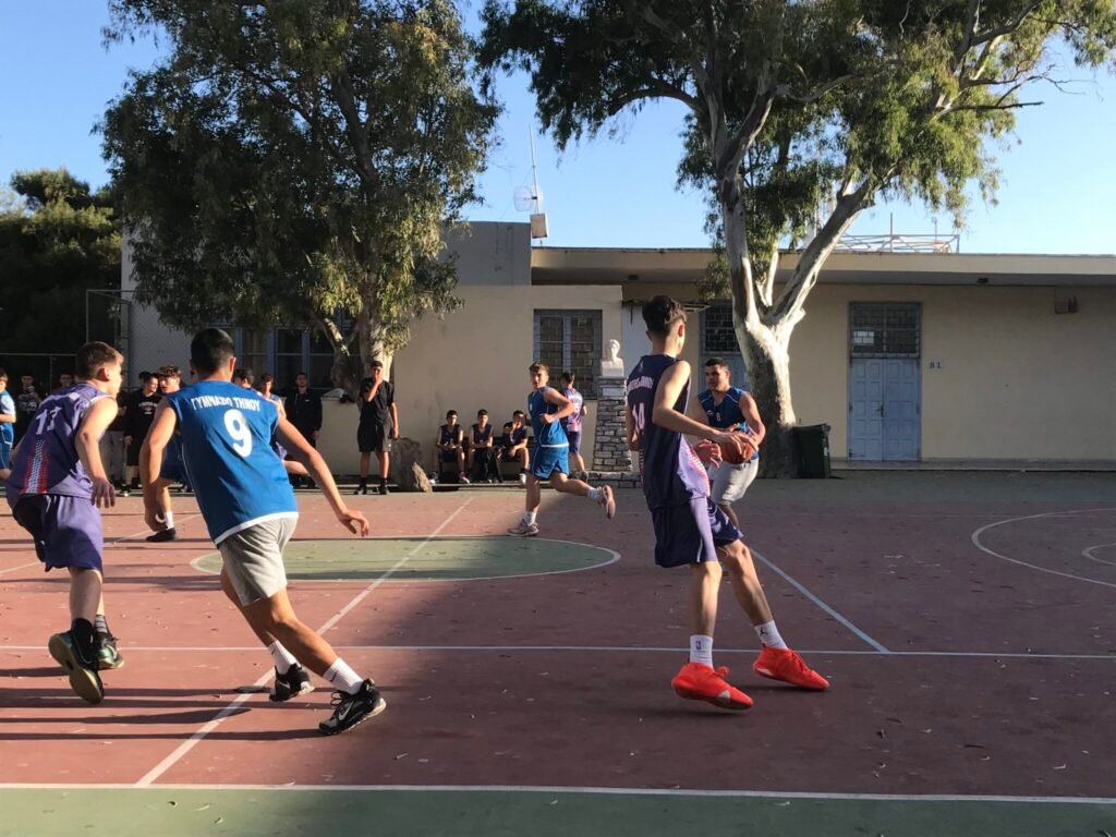 Αγώνες μπάσκετ ανάμεσα στο Γυμνάσιο Τήνου και τα Λεόντεια Γυμνάσια Νέας Σμύρνης και Άνω Πατησίων