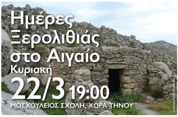 – Ομιλία του ιστορικού κου Μάρκου Παλαμάρη με τίτλο «Η ιστορικότητα της ξερολιθιάς στην Τήνο: Αγροτικό τοπίο, τεχνογνωσία και πολιτιστική κληρονομιά στο νησί του θεού Βορέα»•