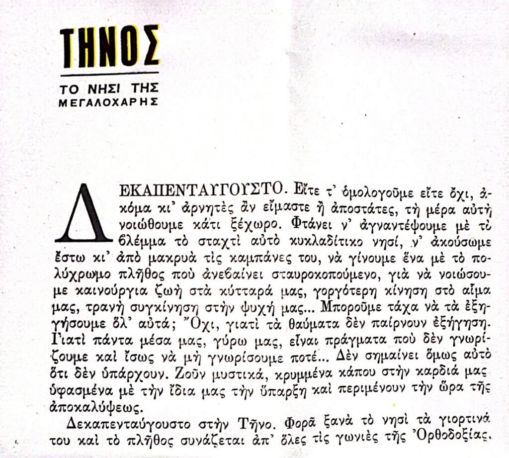 Αφιέρωμα στην Τήνο, σε έντυπο του 1965