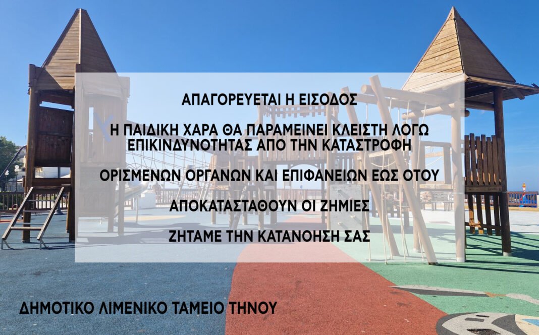 Ανακοίνωση από το Λιμενικό Ταμείο : Κλειστή η παιδική χαρά λόγω ζημιών