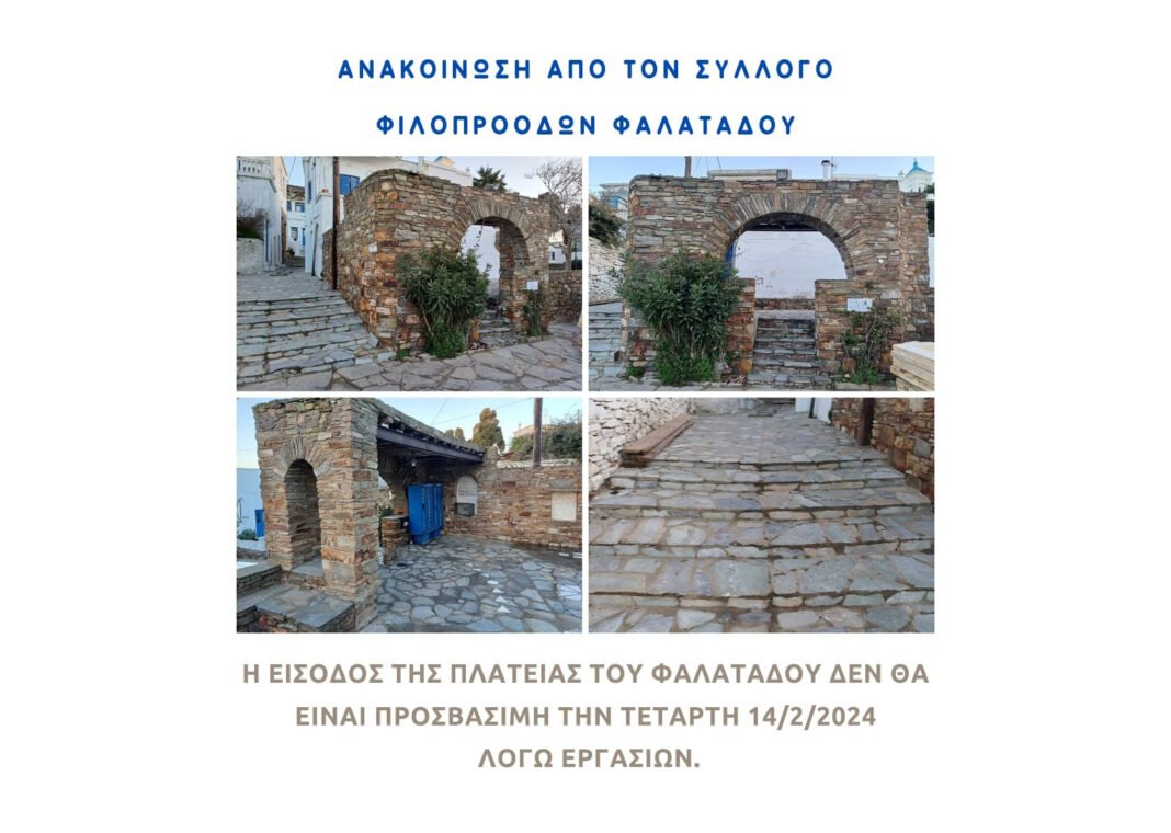 Με σκοπό τη διευκόλυνση της πρόσβασης ατόμων που κινούνται με αμαξίδια στην κεντρική πλατεία του Φαλατάδου, πρόκειται να σχηματιστούν αντίστοιχες ράμπες στο στενό δίπλα από την είσοδο της πλατείας.