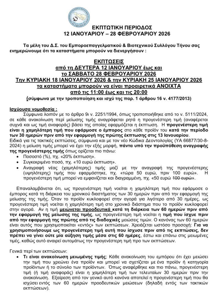 ενημερώνουμε ότι τα καταστήματα μπορούν να διενεργήσουν :