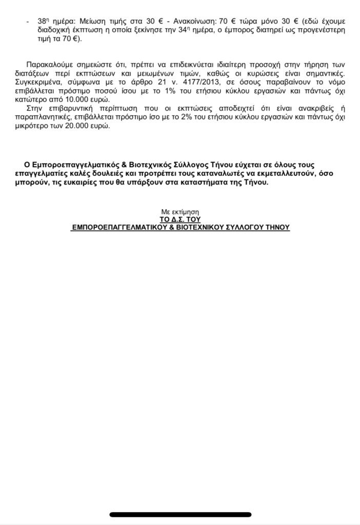 ενημερώνουμε ότι τα καταστήματα μπορούν να διενεργήσουν :