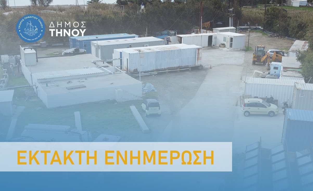 Η Υπηρεσία Ύδρευσης του Δήμου Τήνου ενημερώνει τους κατοίκους ότι λόγω των πολύ συχνών διακοπών ηλεκτροδότησης, παρουσιάζονται προβλήματα στη λειτουργία των μονάδων αφαλάτωσης, γεγονός που επηρεάζει την ομαλή παραγωγή νερού.