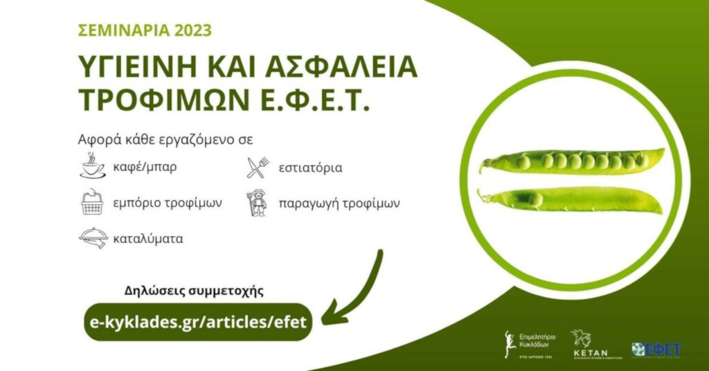 Το Επιμελητήριο Κυκλάδων συνεχίζει τη διεξαγωγή σεμιναρίων Υγιεινής και Ασφάλειας Τροφίμων – ΕΦΕΤ για το 2023