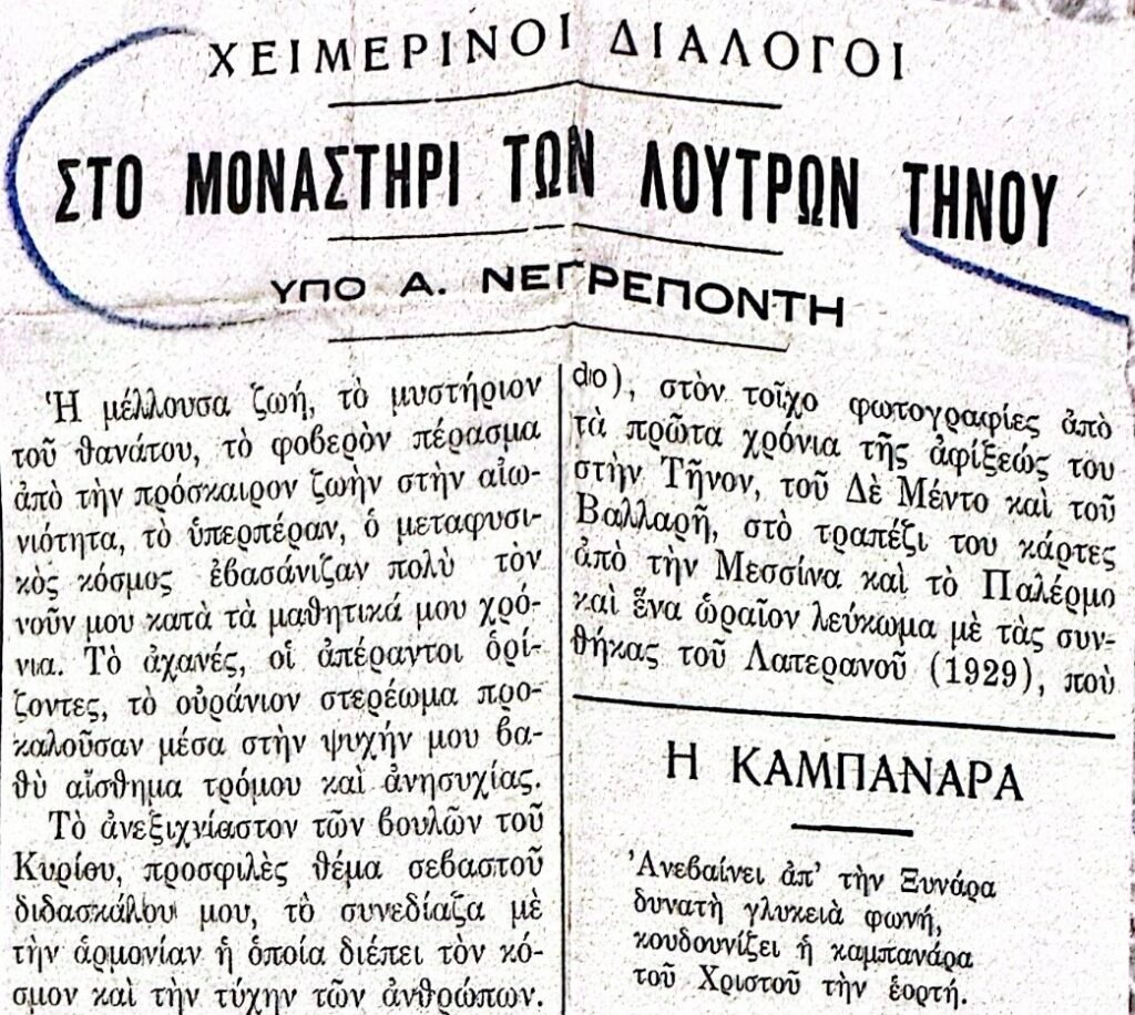 “Χειμερινοί Διάλογοι: Στο Μοναστήρι των Λουτρών Τήνου“