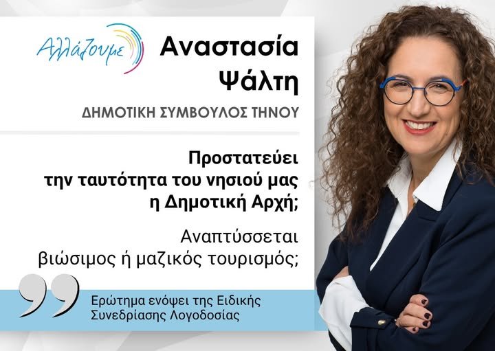 Ερώτημα της Επικεφαλής της Δημοτικής Παράταξης «Αλλάζουμε» και Δημοτικής Συμβούλου Τήνου ενόψει της Ειδικής Συνεδρίασης Λογοδοσίας της Δημοτικής Αρχής