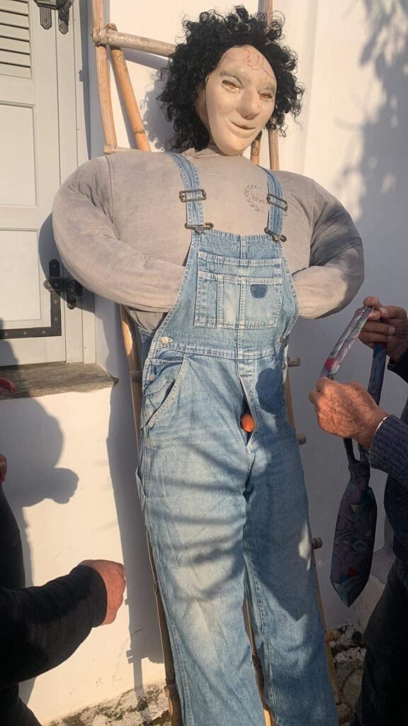 Σήμερα στο χωριό μας , θέλοντας να αναβιώσουμε τα παλαιά έθιμα του τόπου μας, μοιρολογούμε τον αχυρένιο “Μακαρονά” (καρνάβαλο), τον περιφέρουμε στα σοκάκια του χωριού μας και στη συνέχεια τον καίμε.