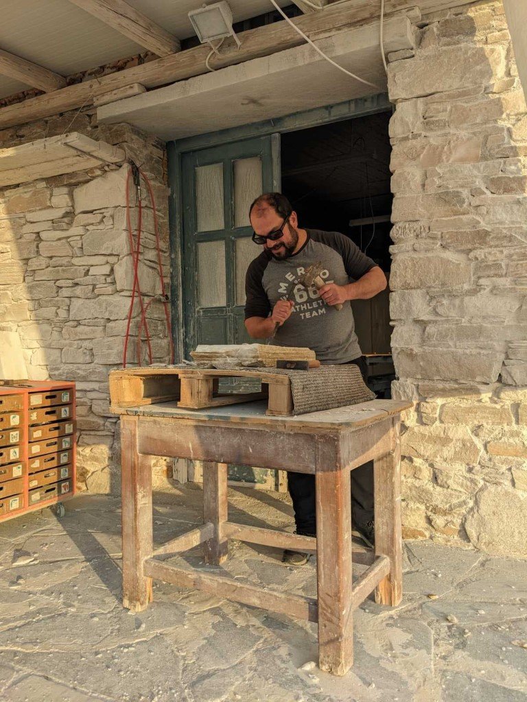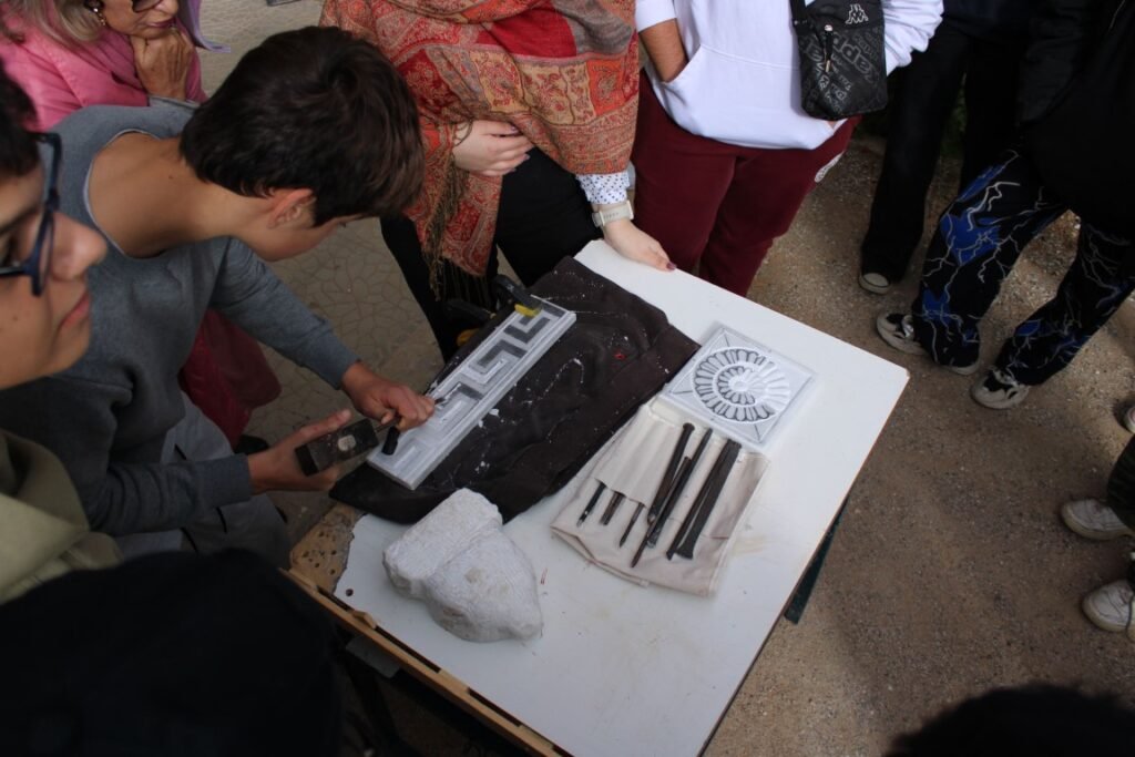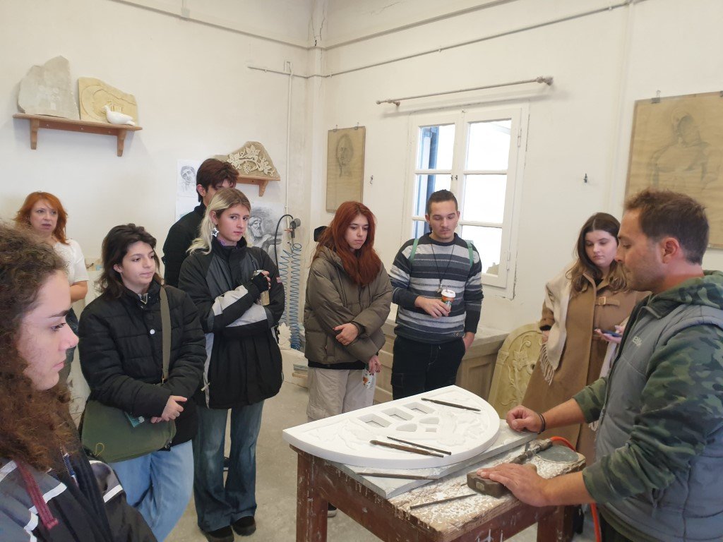 Το πρόγραμμα της δεύτερης περιόδου ξεκίνησε με τη γνωριμία μαθητών από την Τήνο και την Αθήνα στο εργαστήριο των αδελφών Κουσουνάδη στη Χώρα της Τήνου, όπου τα παιδιά είχαν την ευκαιρία να περιηγηθούν στους χώρους ενός ενεργού εργαστηρίου παραδοσιακής μαρμαρογλυπτικής και να πειραματιστούν με τα ηλεκτρικά εργαλεία·πάντα με την καθοδήγηση των έμπειρων μαστόρων. Στη συνέχεια, οι μαθητές, οι καθηγητές τους· και οι σχεδιάστριες του προγράμματος επισκέφθηκαν το Μουσείο Μαρμαροτεχνίας και το Προπαρασκευαστικό Επαγγελματικό Σχολείο Καλών Τεχνών Πανόρμου Τήνου (ΠΕΣΚΤΠΤ), όπου ο διευθυντής της σχολής, Λεωνίδας Χαλεπάς, τους ξενάγησε στις εγκαταστάσεις της Σχολής, τους εξήγησε το πρόγραμμα σπουδών και εμβάθυνε σε ειδικά ζητήματα δημιουργίας γλυπτού αντιγράφου σε πηλό αλλά και δημιουργίας γύψινων αντιγράφων μετά από ερώτηση των μαθητών. Τη σκυτάλη πήρε, στη συνέχεια, ο μαρμαρογλύπτης Ονούφριος Δεσύπρης και εξήγησε στους συμμετέχοντες τη διαδικασία μεταφοράς ενός έργου από τον γύψο στο μάρμαρο.
