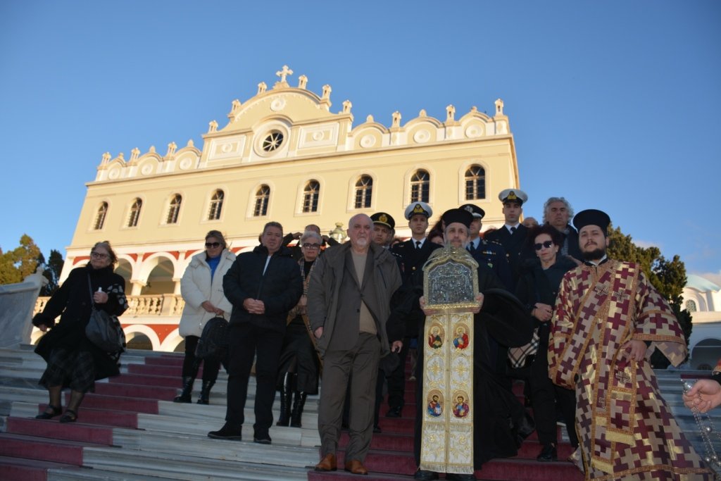 Την αγία Εικόνα συνόδευσαν η Αντιπεριφερειάρχης Υγείας και Έπαρχος Τήνου, η Πρόεδρος του Λιμενικού Ταμείου Τήνου, ο Αρχηγός της Μείζονος Αντιπολιτεύσεως και νεοεκλεγείς Δήμαρχος Τήνου, ο Λιμενάρχης Τήνου, ο Διοικητής του ΑΤ Τήνου, ο Διοικητής του Πυροσβεστικού Κλιμακίου Τήνου, ο Αντιπρόεδρος της Διοικούσης Επιτροπής το Ιερό Ίδρυμα, Δημοτικοί Σύμβουλοι, τα μέλη της Διοικούσης Επιτροπής του ΠΙΙΕΤ, νεοεκλεγέντες Δημοτικοί Σύμβουλοι, μέλη της Αδελφότητος των εν Αθήναις Τηνίων, ο Πρόεδρος της Τοπικής Κοινότητος Υστερνίων, ο Πρόεδρος της Τοπικής Κοινότητος Καρδιανής, ο Πρόεδρος της Δημοτικής Επιχείρησης και διατελέσας Πρόεδρος της Τοπικής Κοινότητος Καρδιανής.