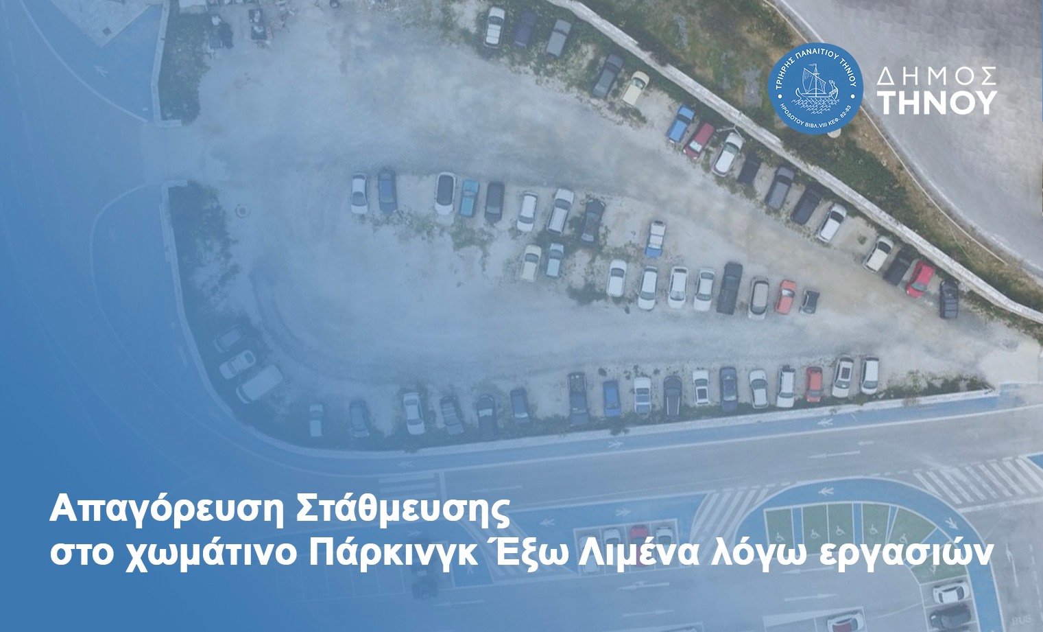 Το Δημοτικό Λιμενικό Ταμείο Τήνου ανακοινώνει ότι, σύμφωνα με απόφαση του Διοικητικού Συμβουλίου του, το περίκλειστο χωμάτινο πάρκινγκ του Έξω Λιμένα λόγω της εκτέλεσης των εργασιών που έχουν ήδη ξεκινήσει θα παραμείνει κλειστό καθ’ όλη τη διάρκεια των έργων.