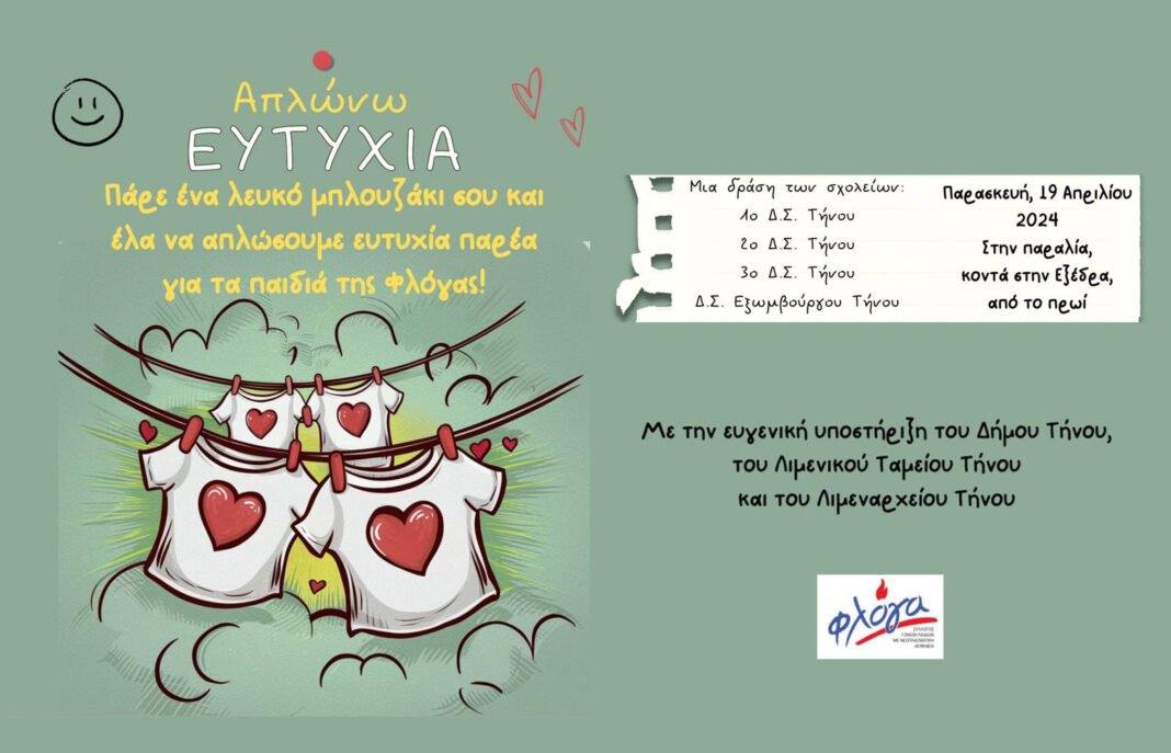 Τα σχολεία 1ο,2ο,3ο & Εξωμβγούργου Δημοτικά Σχολεία Τήνου με την ευγενική υποστήριξη του Δήμου Τήνου, του Λιμενικού Ταμείου και του Λιμεναρχείου Τήνου διοργανώνει τη δράση «Απλώνω ευτυχία»