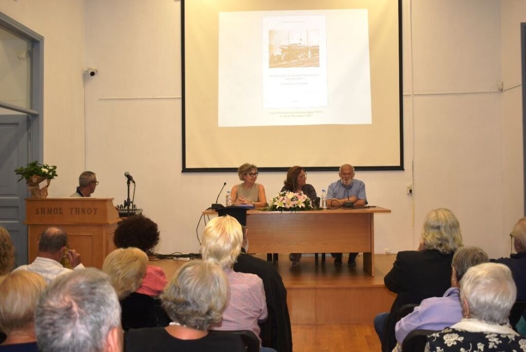 Σε μια κατάμεστη αίθουσα από βιβλιόφιλους και εραστές της ιστορίας του τόπου μας, με έντονη την παρουσία εκπαιδευτικών εν ενεργεία και συνταξιούχων Α΄ & Β΄ Βαθμίδας, ακούστηκαν γεγονότα σχεδόν άγνωστα στο ευρύ κοινό, από το όχι και τόσο μακρινό παρελθόν του γενέθλιου τόπου μας, αυτόν της Τήνου.