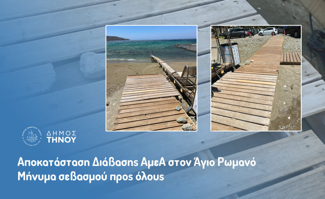 Ο Δήμος Τήνου ενημερώνει ότι πραγματοποιήθηκε άμεσα η αποκατάσταση στο σύστημα ράμπας ΑμεΑ που χθες υπέστη φθορές από άγνωστους.