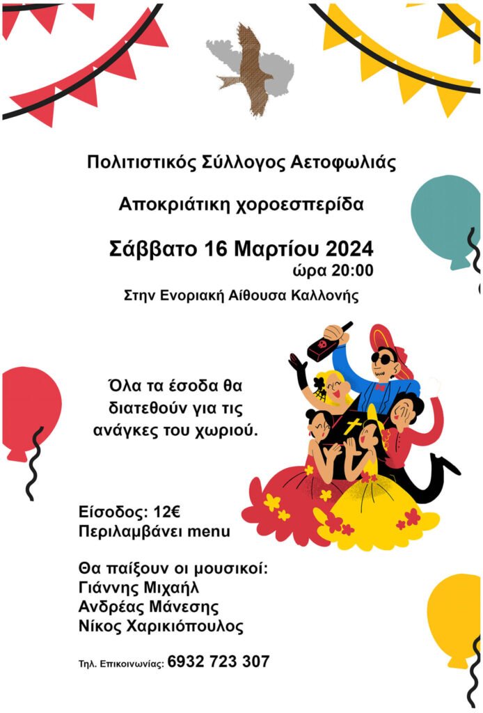 Αποκριάτικη χοροεσπερίδα από το Πολιτιστικό Σύλλογο Αετοφωλιάς Τήνου