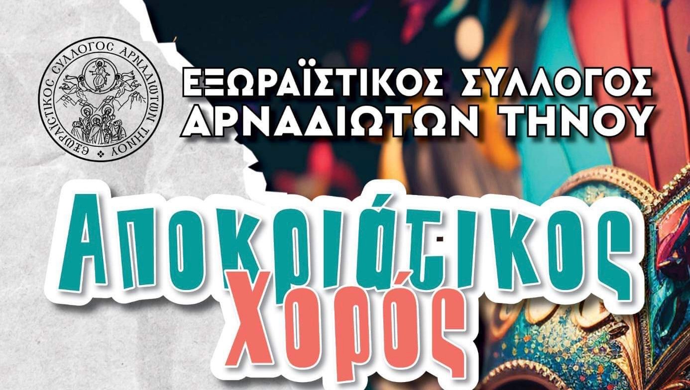 Ο Εξωραϊστικός Σύλλογος Αρναδιωτών Τήνου σας προσκαλεί στον αποκριάτικο χορό την Κυριακή στις 26/2/23 στην ταβέρνα “Ο Αρνάδος”.