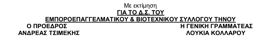 Ο Πρόεδρος Ανδρέας Τσιμέκης και τα μέλη του Δ.Σ. του Εμποροεπαγγελματικού & Βιοτεχνικού Συλλόγου Τήνου νιώθουμε πραγματικά περήφανοι για όλα αυτά που ζήσαμε μαζί σας αυτές τις τρεις μέρες και θα θέλαμε από καρδιάς να ευχαριστήσουμε όσους βοήθησαν για αυτή τη διοργάνωση.