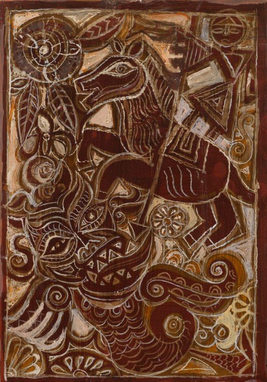 Η ζωγραφική που κάνει τα τελευταία είκοσι χρόνια έχει σαφή θεολογική αναφορά. Άγγελοι, δράκοι, φυτικά μοτίβα, καράβια, πουλιά και κυπαρίσσια συναντώνται στα έργα του, όπως αποτυπώνονται στην πρωτοχριστιανική αλλά και στη λαϊκή ανατολική παράδοση. Όπως αναφέρει και ο ίδιος: «Η τελευταία, τρέχουσα έκθεση μου στο Παρίσι αποτελεί μία φιλόθεη προσέγγιση και φέρει αυτόν ακριβώς τον τίτλο. Φιλοξενείται στον εκθεσιακό χώρο του μητροπολιτικού ναού του Αγίου Στεφάνου και αφορά κάθε Έλληνα ή Γάλλο που στοχάζεται πάνω στη ζωή και την τέχνη, συμμερίζεται το ιλαρό Φως της χριστιανοσύνης και διακρίνει, τέλος, στην εργασία μου ένα ελάχιστο πειστήριο εντοπιότητας που αγαπώ να κυριαρχεί και να ορίζει τη δουλειά μου∙ ένα τεκμήριο για τον τόπο απ’ όπου κατάγεται ο νους μου και το κέντρο του, που είναι η καρδιά μου. Η έκθεση αυτή αποτελεί για εμένα μία ευκαιρία να διαπιστώσω εάν με την καλλιτεχνική μου προσπάθεια μπορώ να βρω με όρους συμπάθειας ανταπόκριση σ’ ένα ξένο, με διαφορετικές πολιτισμικές αφετηρίες κοινό, αν θα μπορέσουν άνθρωποι με μια κουλτούρα διαφορετική να περιχωρήσουν αγαπητικά και να αισθανθούν οικεία την τέχνη μου. Το γεγονός ότι η έκθεση αυτή πραγματοποιείται σ’ έναν ορθόδοξο ναό του Παρισιού προσφέρει το ιδανικό ερμηνευτικό πλαίσιο, προσφέρει θα έλεγα μαρτυρία, για τον ταπεινό σκοπό που με πείσμα υπηρετώ στην έως σήμερα πορεία μου.»