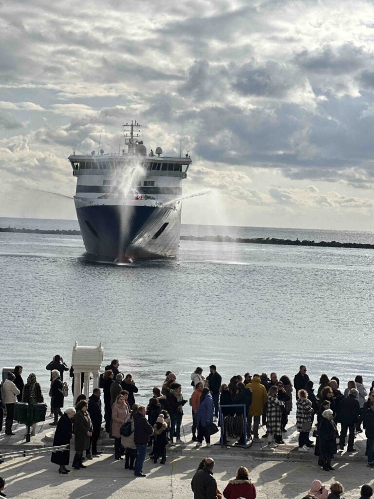 Κατά τη διάρκεια της λιτανείας που έγινε σήμερα 30 Ιανουαρίου στην πλατεία Παντανάσσης, ο πλοίαρχος του Blue Star Paros, Καπετάνιος Νικόλαος Γερακίτης, έσπευσε στο παλιό λιμάνι της Τήνου, όπου απέδωσε τιμητικό χαιρετισμό.