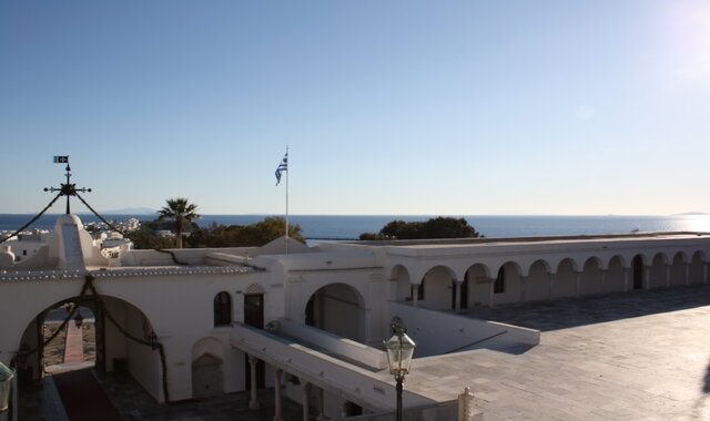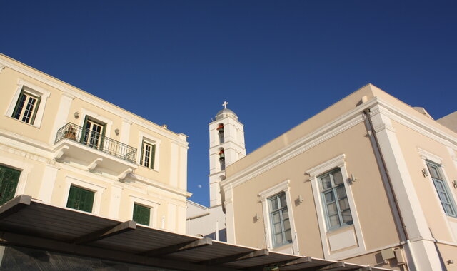 Μετά λοιπόν την απαραίτητη δόση ενέργειας, περιπλανήθηκα στα σοκάκια πίσω από τον καθολικό ναό του Αγίου Νικολάου και στη συνέχεια ανηφόρισα τον παλιό δρόμο της Παναγίας (αυτός με τα μαγαζάκια). Μια μέρα σαν κι αυτή αξίζει να ανέβεις τα σκαλιά του Ιερού Ναού της Ευαγγελίστριας ακόμα και για να θαυμάσεις τη θέα από ψηλά.