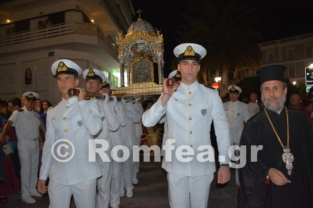 Το Ιερό κουβούκλιο έφερον επι των ώμων τους, στελέχη του λιμεναρχείου Τήνου, με επικεφαλής τον Λιμενάρχη Τήνου.
