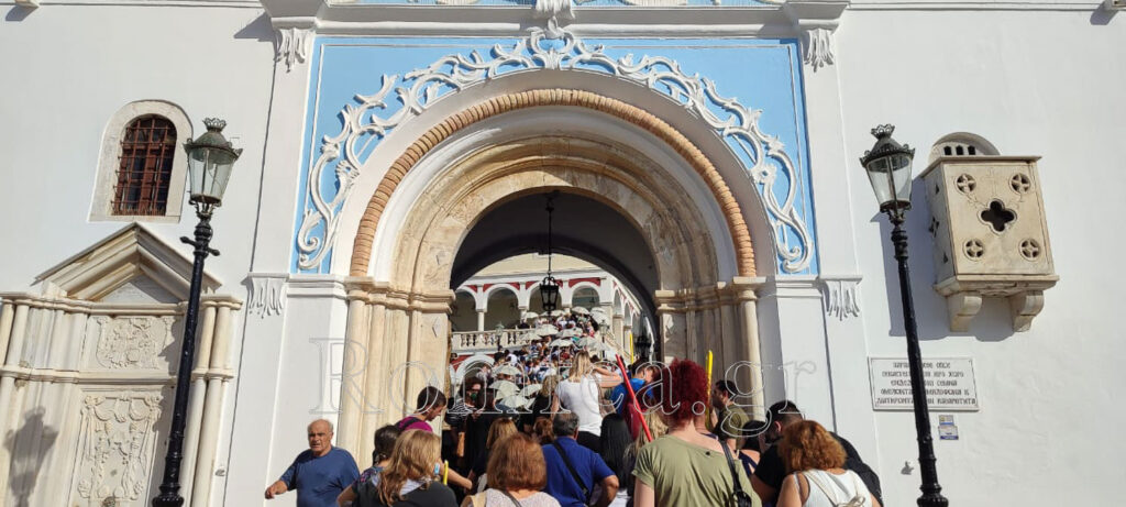 Αξιοσημείωτη και συγκινητική είναι η συνεχιζόμενη προσέλευση των πιστών από όλα τα μέρη της Ελλάδος αλλά και του εξωτερικού στον Πανίερο Ναό της Ευαγγελιστρίας ώστε να προσκυνήσουν το περίπυστο και θαυματουργό Εικόνισμα της Μεγαλόχαρης και να εκζητήσουν τη βοήθεια και μεσιτεία της Θεοτόκου.