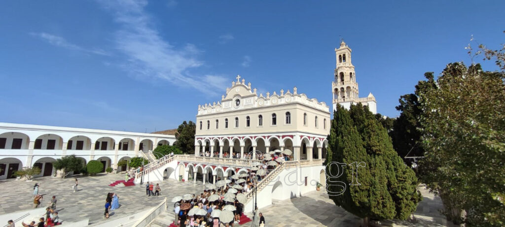 Ο Σεβασμιώτατος Μητροπολίτης Σύρου-Τήνου κ. Δωρόθεος Β’ με αμείωτο ενδιαφέρον φροντίζει ώστε να τελούνται οι Ιερές Ακολουθίες, να εξυπηρετούνται και να βρίσκουν ανάπαυση οι προσκυνητές καθ’ όλη τη διάρκεια της ημέρας.