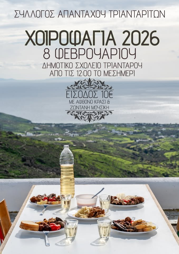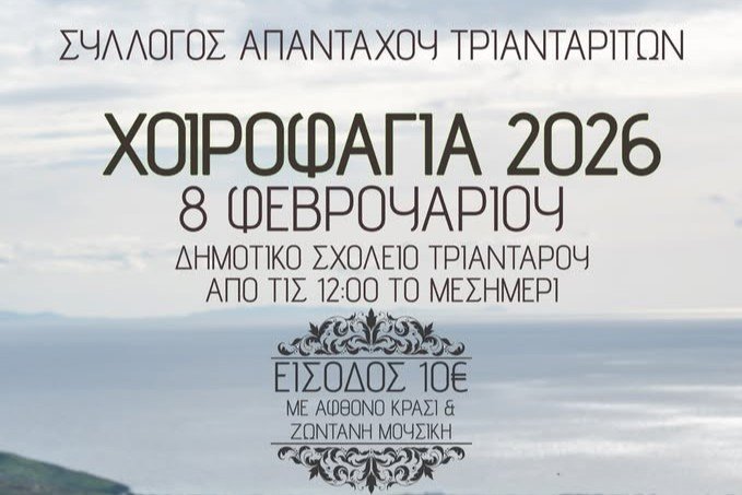 Ο Σύλλογος Απανταχού Τριανταριτών σας προσκαλεί στη Χοιροφαγία 2026,