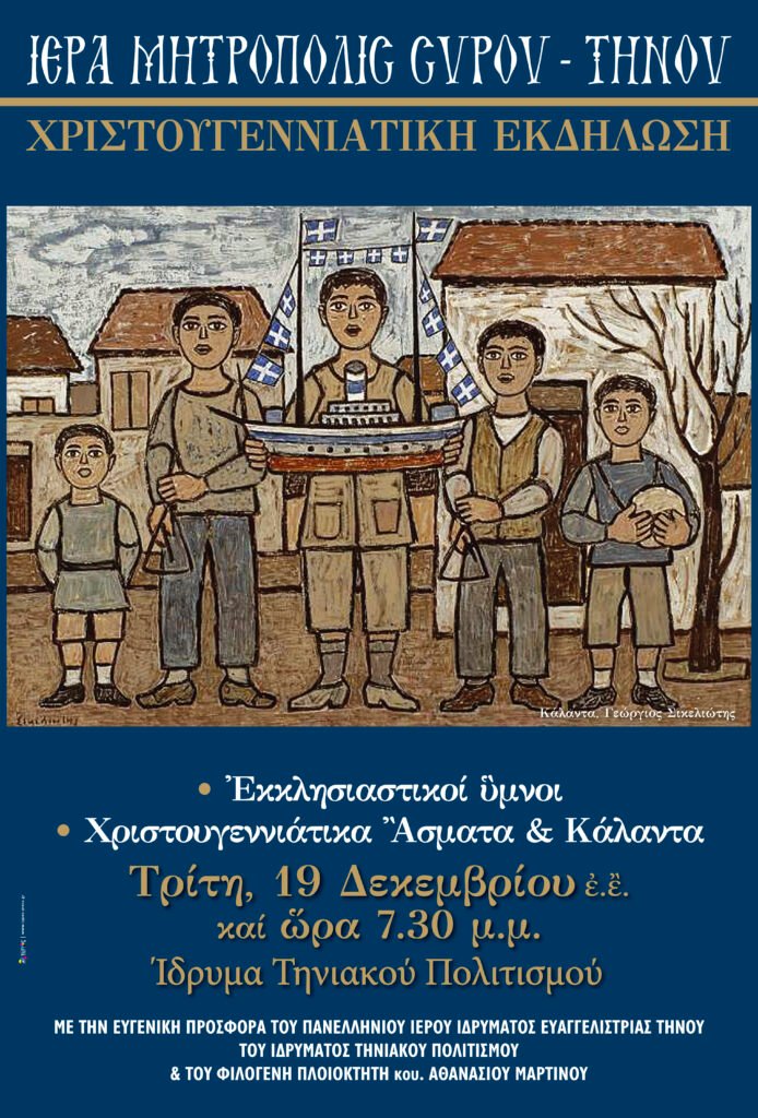 Τρίτη 19 Δεκεμβρίου και ώρα 7:30 μμ στο Ίδρυμα Τηνιακού Πολιτισμού