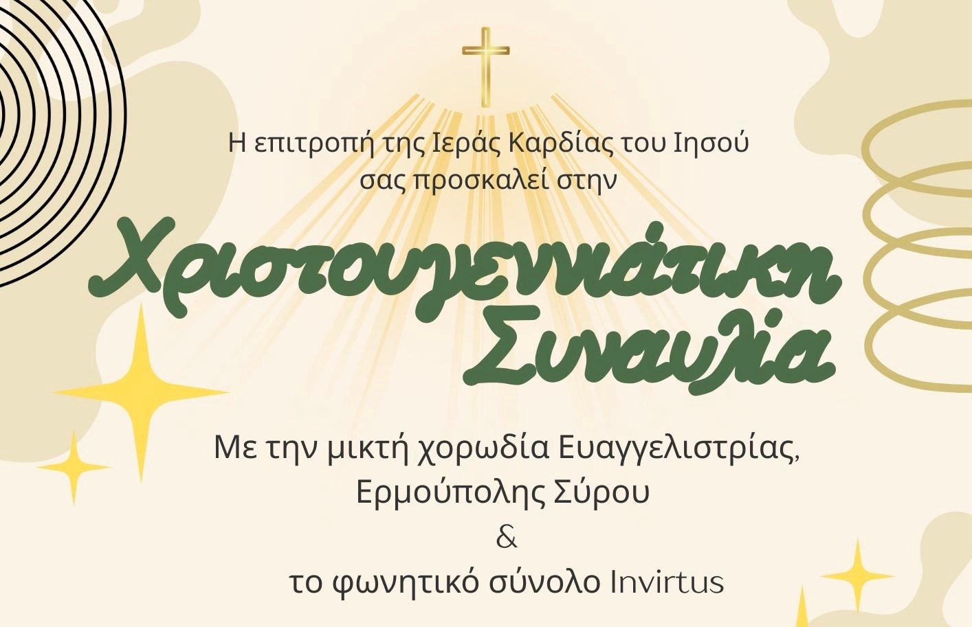 Ελάτε να ζήσουμε μαζί το πνεύμα των Χριστουγέννων, με αγαπημένες μελωδίες από την μικτή χορωδια Ευαγγελιστριας, Ερμούπολης Συρου & το φωνητικό σύνολο Invirtus που θα μας βάλουν όλους στο κλίμα των γιορτών.