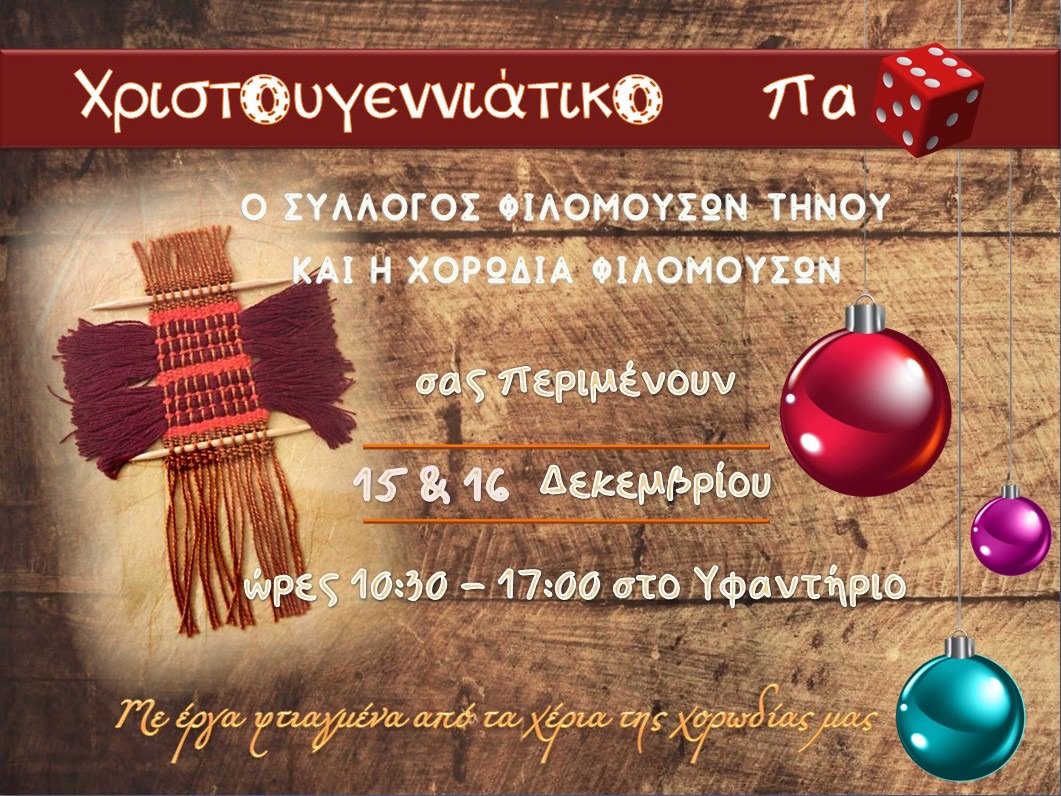 Σας προσκαλούμε με χαρά στο Χριστουγεννιάτικο παζάρι που διοργανώνουμε στο Υφαντήριο.
