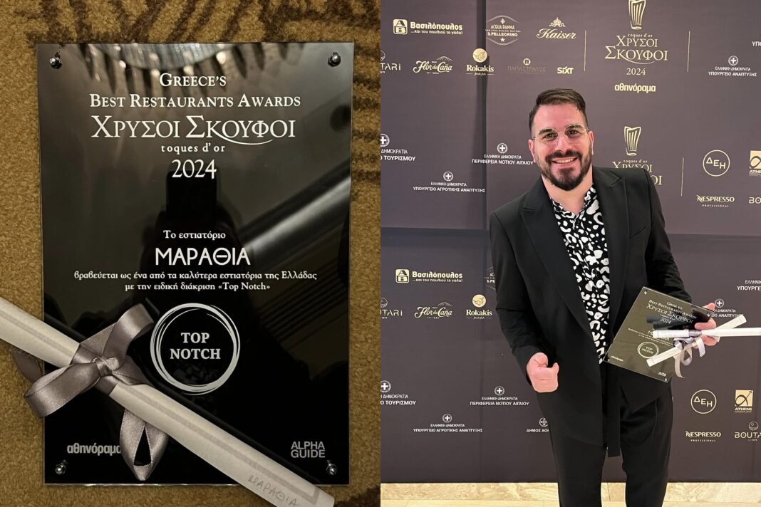 Χρυσοί Σκούφοι 2024 – τιμητική διάκριση Top Notch για το εστιατόριο Μαραθιά