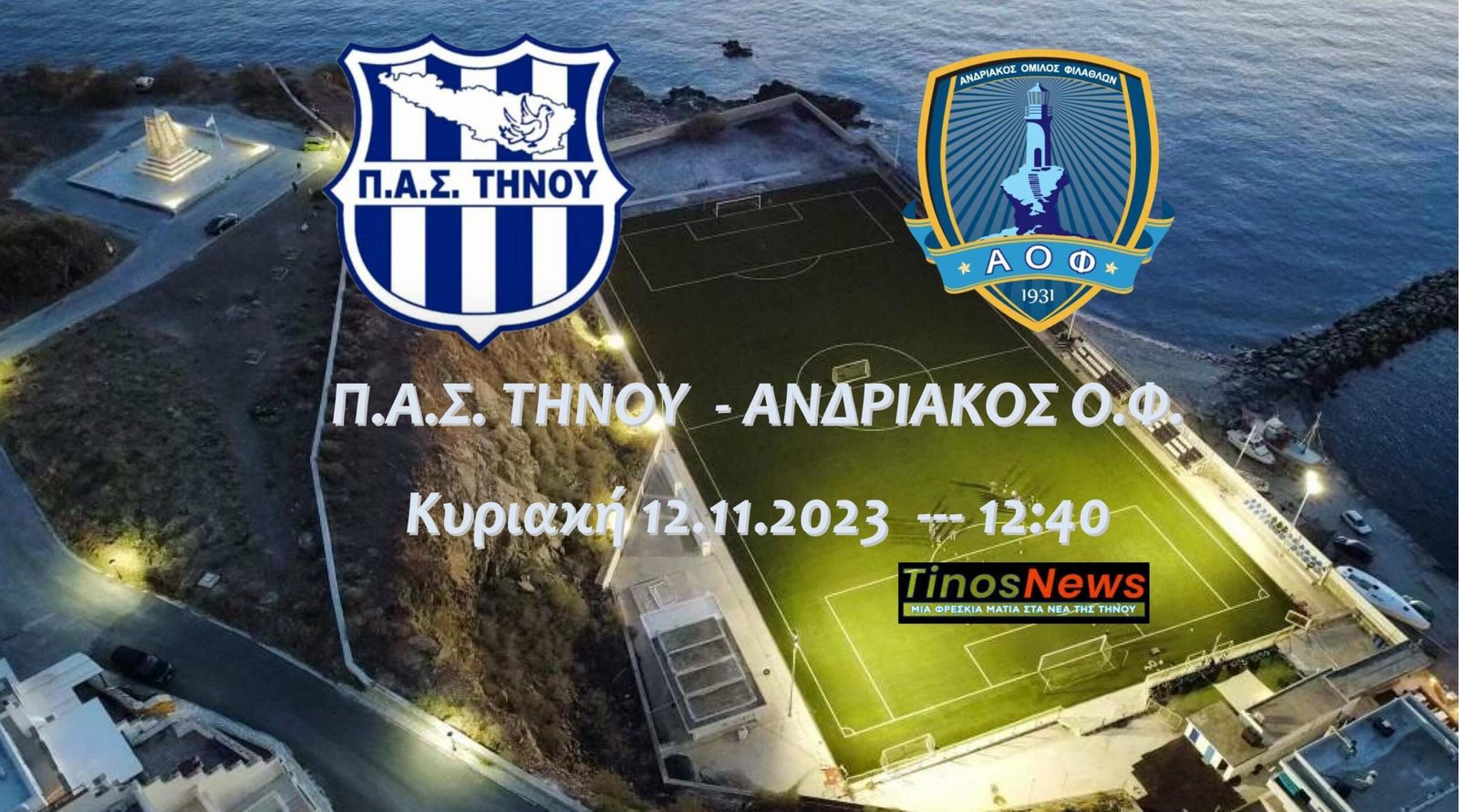 Αναβλήθηκε ο αγώνας της Κυριακής 12 Νοεμβρίου 2023, Π.Α.Σ. ΤΗΝΟΥ – ΑΝΔΡΙΑΚΟΣ Ο.Φ. για την Α’ ΚΑΤΗΓΟΡΙΑ, λόγω δυσμενών καιρικών συνθηκών !!!