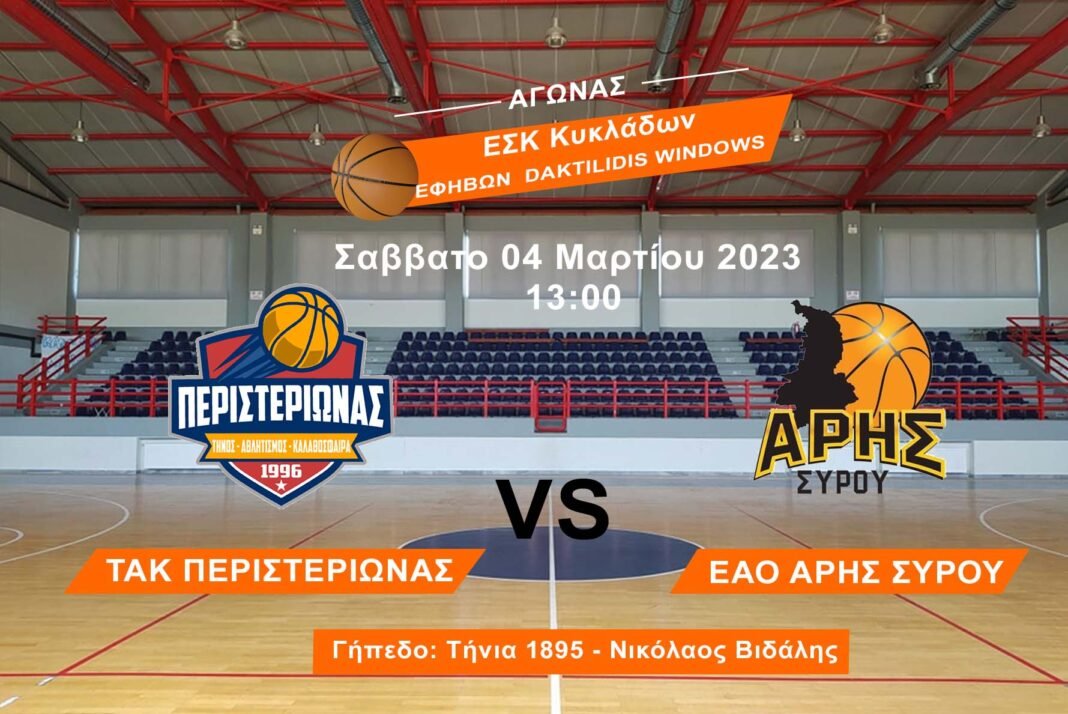 Δείτε σε μετάδοση από το κανάλι TinosWebTv τον αγώνα μπάσκετ ΤΑΚ Περιστεριώνας – ΑΟ Άρης Σύρου για το Πρωτάθλημα DAKTILIDIS WINDOWS ΕΣΚ Κυκλάδων.