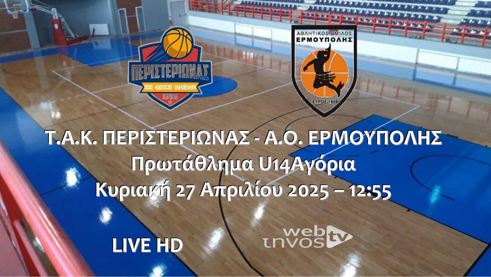 Δείτε Live: ΤΑΚ Περιστεριώνας vs Α.Ο. Ερμούπολης U14 Αγόρια