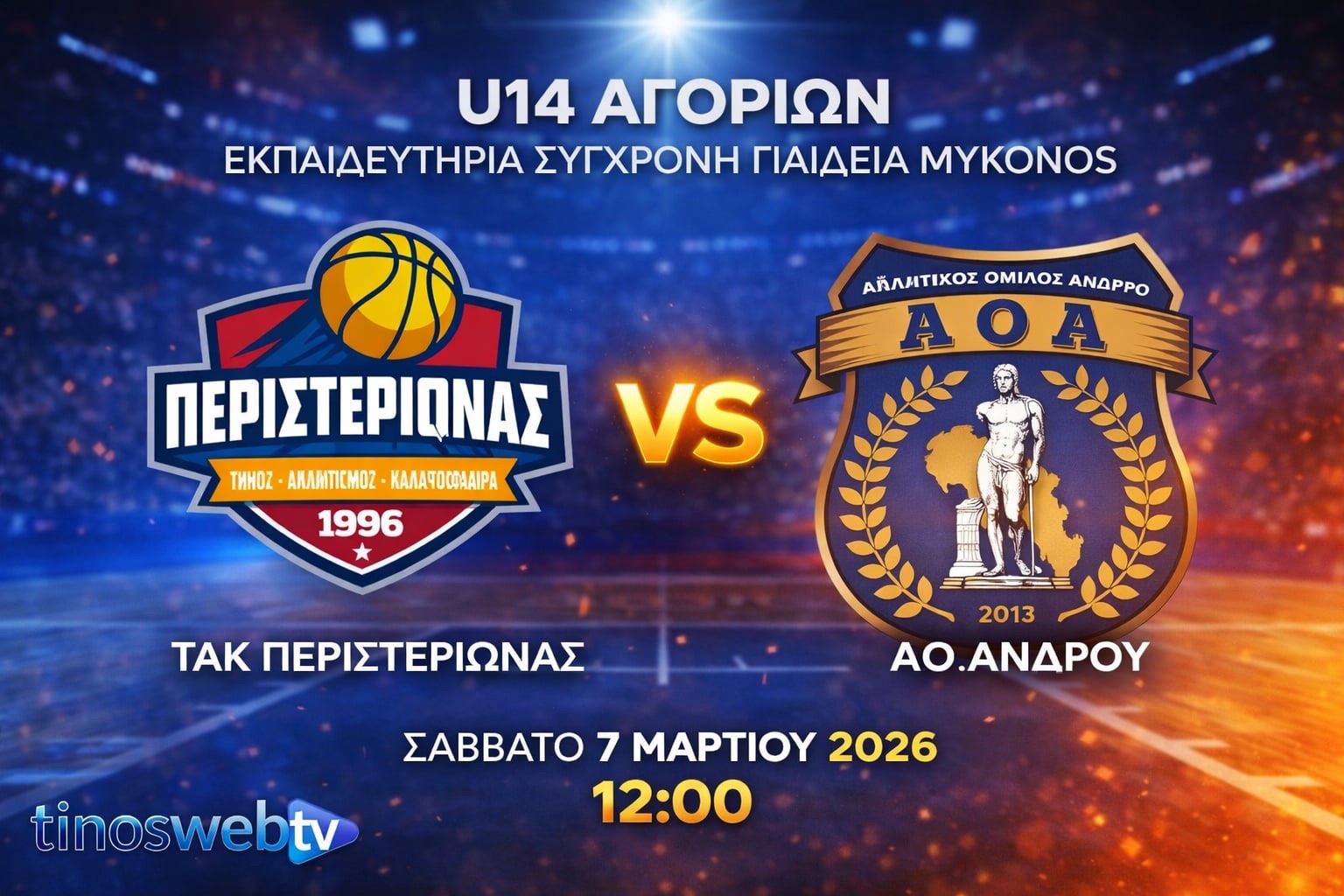 ΤΑΚ Περιστεριώνας – ΑΟ Άνδρου, Πρωτάθλημα U14 ΑΓΟΡΙΩΝ ΕΚΠΑΙΔΕΥΤΗΡΙΑ ΣΥΓΧΡΟΝΗ ΠΑΙΔΕΙΑ ΜΥΚΟΝΟΣ