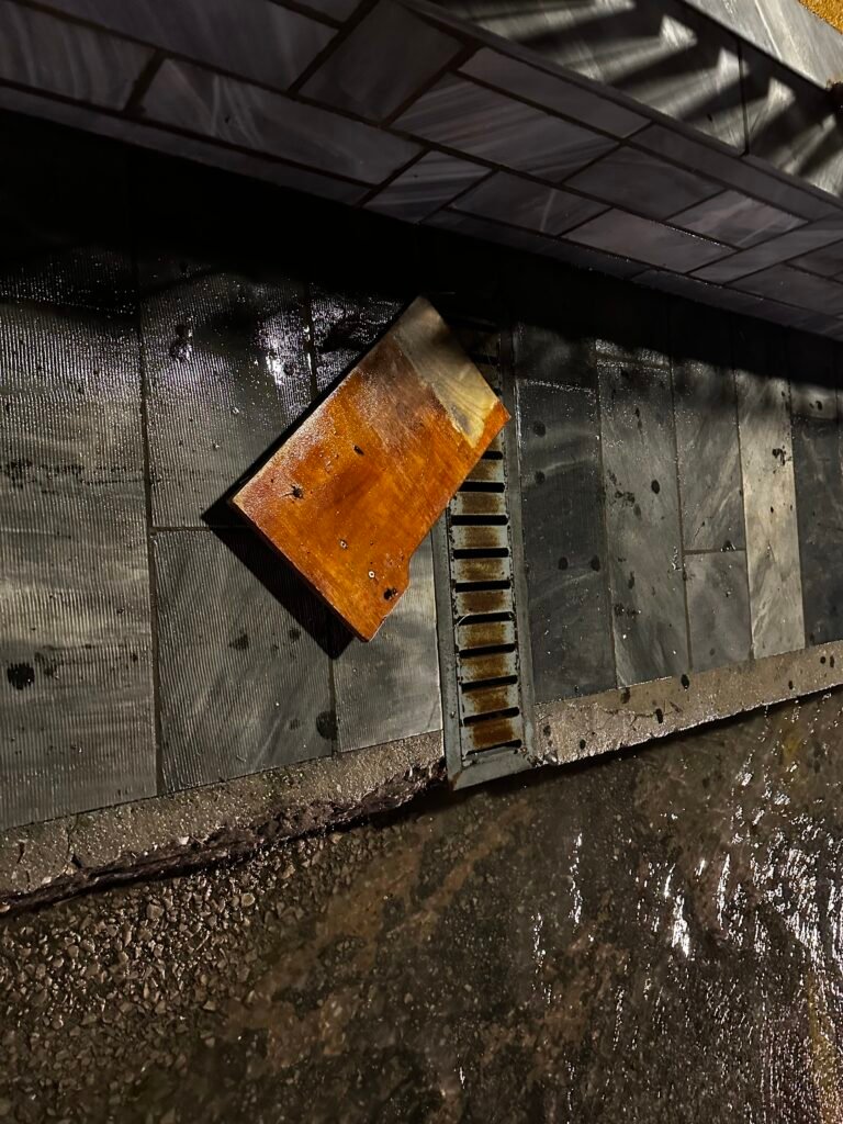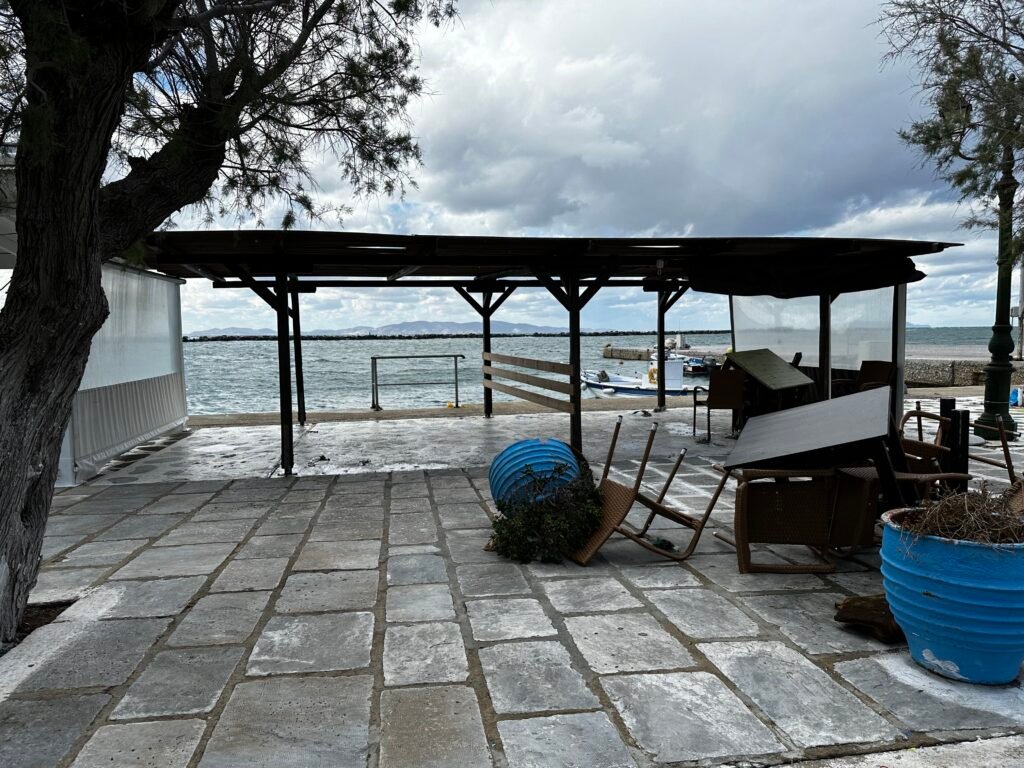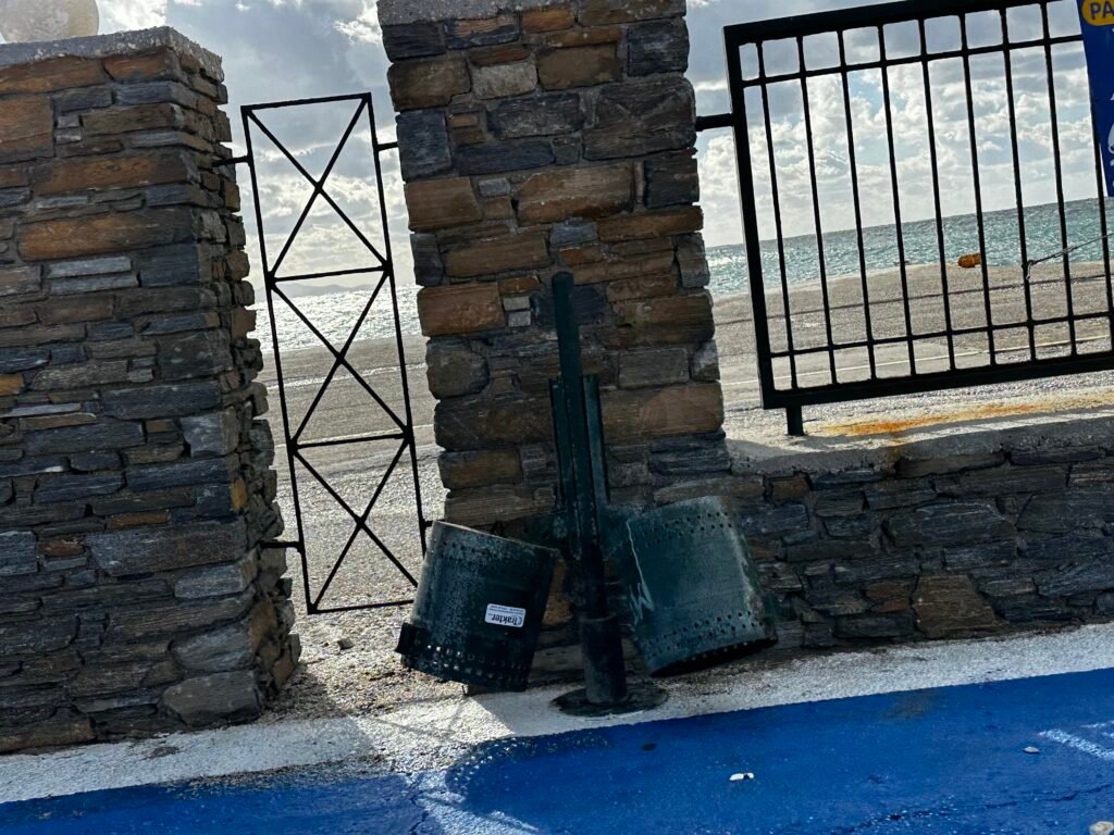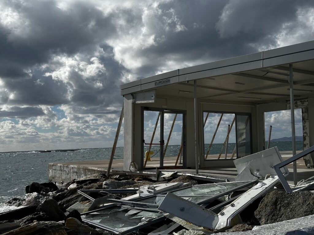 Η κατασκευή “το κιόσκι” που είχε τοποθετηθεί στη Χερσαία Ζώνη του λιμένα για την κάλυψη των αναγκών του Υδατοδρομίου Τήνου, επίσης καταστράφηκε.