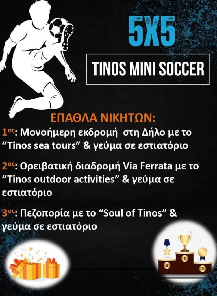 Ο Σύλλογος Νεολαίας Τήνου, στηρίζοντας τις εναλλακτικές μορφές τουρισμού, προσφέρει στους νικητές του τουρνουά 5×5 “Tinos Mini Soccer”, μια μοναδική ευκαιρία να αναρριχηθούν, να περπατήσουν και να εξερευνήσουν – μαζί με την ομάδα τους, την εναλλακτική πλευρά του νησιού μας και όχι μόνο!!!