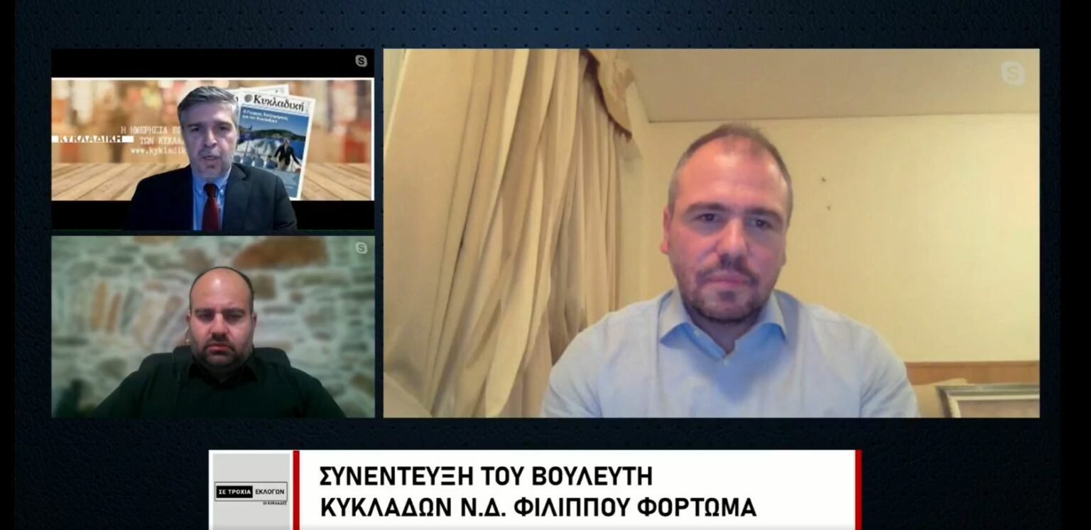 Πρώτος προσκεκλημένος ήταν ο Βουλευτής Κυκλάδων της Ν.Δ. Φίλιππος Φόρτωμας, ο οποίος στο διαδικτυακό πάνελ των δύο ιστοσελίδων, απάντησε σε πολλά ερωτήματα που του έθεσαν οι καταξιωμένοι δημοσιογράφοι, Λάμπρος Δεμερτζής και Γιώργος Σολάρης.
