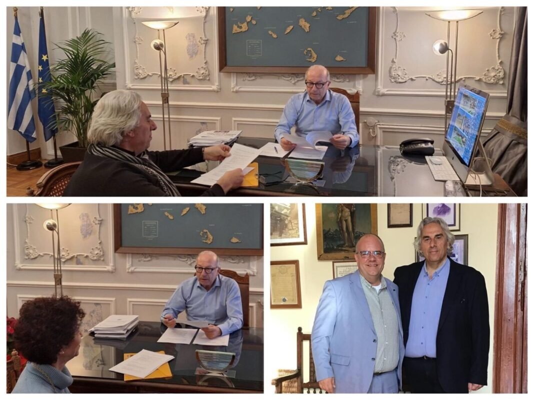 Μετά την επίσκεψη του Αντιπεριφερειάρχη Πρωτογενούς Τομέα κ. Φιλήμονα Ζαννετίδη στον Δήμο Τήνου, ο Δήμαρχος Τήνου συνοδευόμενος από την Έπαρχο του νησιού κ. Νατάσα Δεληγιάννη -Άσπρου, μετέβη στην έδρα της Περιφέρειας, στη Σύρο, προκειμένου να συναντηθεί με τον Χωρικό Αντιπεριφερειάρχη κ. Γιώργο Λεονταρίτη .