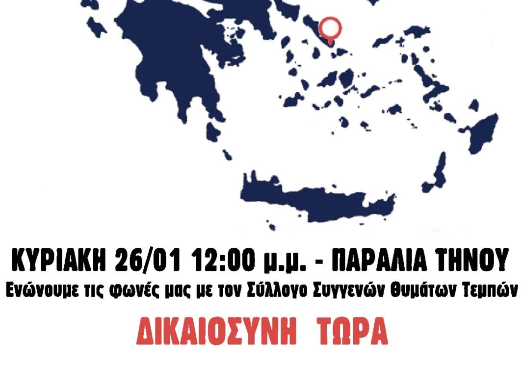 Καλούμε τον κόσμο της Τήνου σε συγκέντρωση την Κυριακή 26/01 στις 12.00 στην Παραλία της Τήνου (μπροστά από τις τράπεζες).