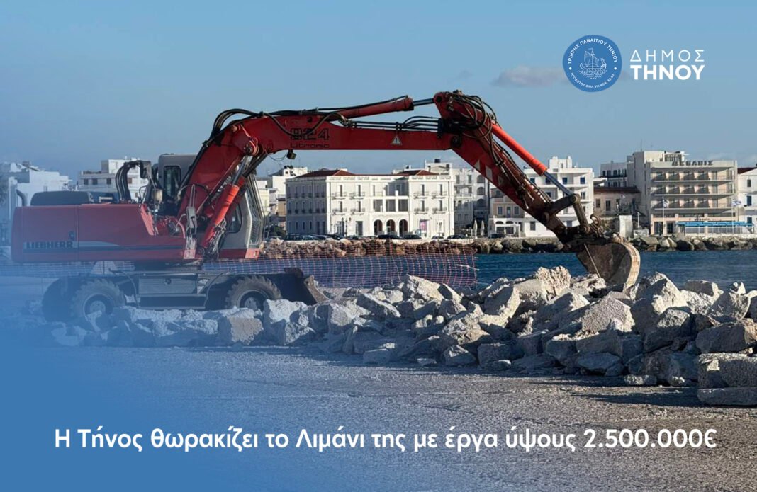 Η Τήνος θωρακίζει το Κεντρικό Λιμάνι της, πύλη εισόδου των κατοίκων και των επισκεπτών του νησιού μας, υλοποιώντας τη μεγαλύτερη παρέμβαση των τελευταίων ετών, διασφαλίζοντας έτσι την ασφάλεια των πλοίων, των επισκεπτών και των κατοίκων μας.