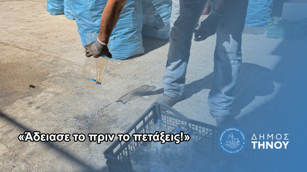 Ο Δήμος Τήνου συνεχίζει τις δράσεις ευαισθητοποίησης για την ανακύκλωση με ένα νέο σύντομο βίντεο που υπενθυμίζει μια απλή αλλά σημαντική συνήθεια: να αδειάζουμε τις συσκευασίες πριν τις πετάξουμε στον κάδο ανακύκλωσης.